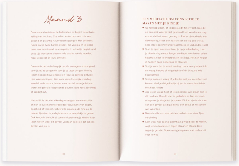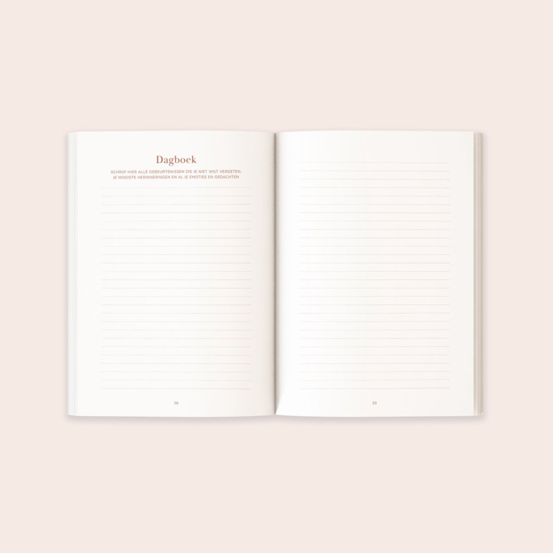 Er is genoeg ruimte om te schrijven en door het dagboek heen vind je verschillende invulvragen. Zo kun je jouw reis naar moeder documenteren en herinneringen bewaren in je hart en op papier. Een prachtig naslagwerk, of je nu voor de eerste keer of opnieuw moeder wordt. Elke zwangerschap verdient het om bij stil te staan.